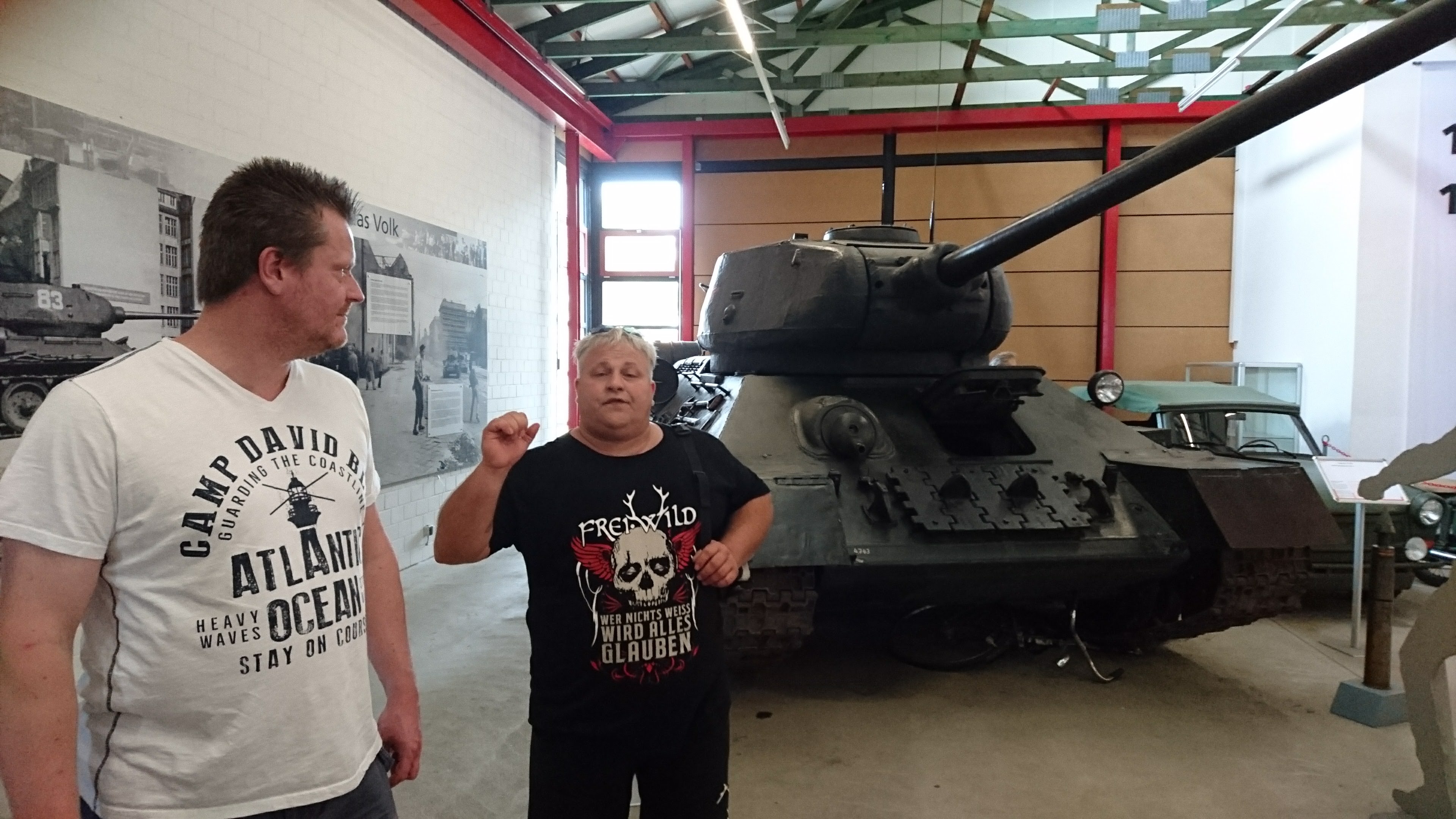 1201 – 1400.Besuch des Museums ohne Störfälle. Lediglich in der letzten Halle kommt es bei Spielerfrau Ilka angesichts der vielen langen Rohre der ausgestellten Panzer zu einer emotionalen Kurzschlussreaktion. Kommandant Jan kann aber mit einer beherzten Reaktion die er in seiner Nahkampfausbildung in Himmelsdorf erlernt hat die Kuschelattacke seiner Begleitung abwehren. Ein Kuss muss dann erstmal reichen. Vorfreudigerweise gelang es Spieler Smörre, diesen Augenblick in einer kleinen Fotostrecke festzuhalten. Zusammenhängenderweise sollte erwähnt werden, dass die kurze Stummelkanone des ausgestellten Artilleriepanzer Wespe zuvor zu einem heftigen Disput zwischen Jens und Anja führte. Teile des Gesprächs waren von Spieler Smörre gut zu verstehen und wurden an den Verfasser dieses Protokolls weitergegeben. Zu Wahrung der Persönlichkeitsrechte des Spielers Jens wird auf eine Veröffentlichung zu diesem Zeitpunkt verzichtet. 2:0 für Smörre. Fortsetzung folgt.