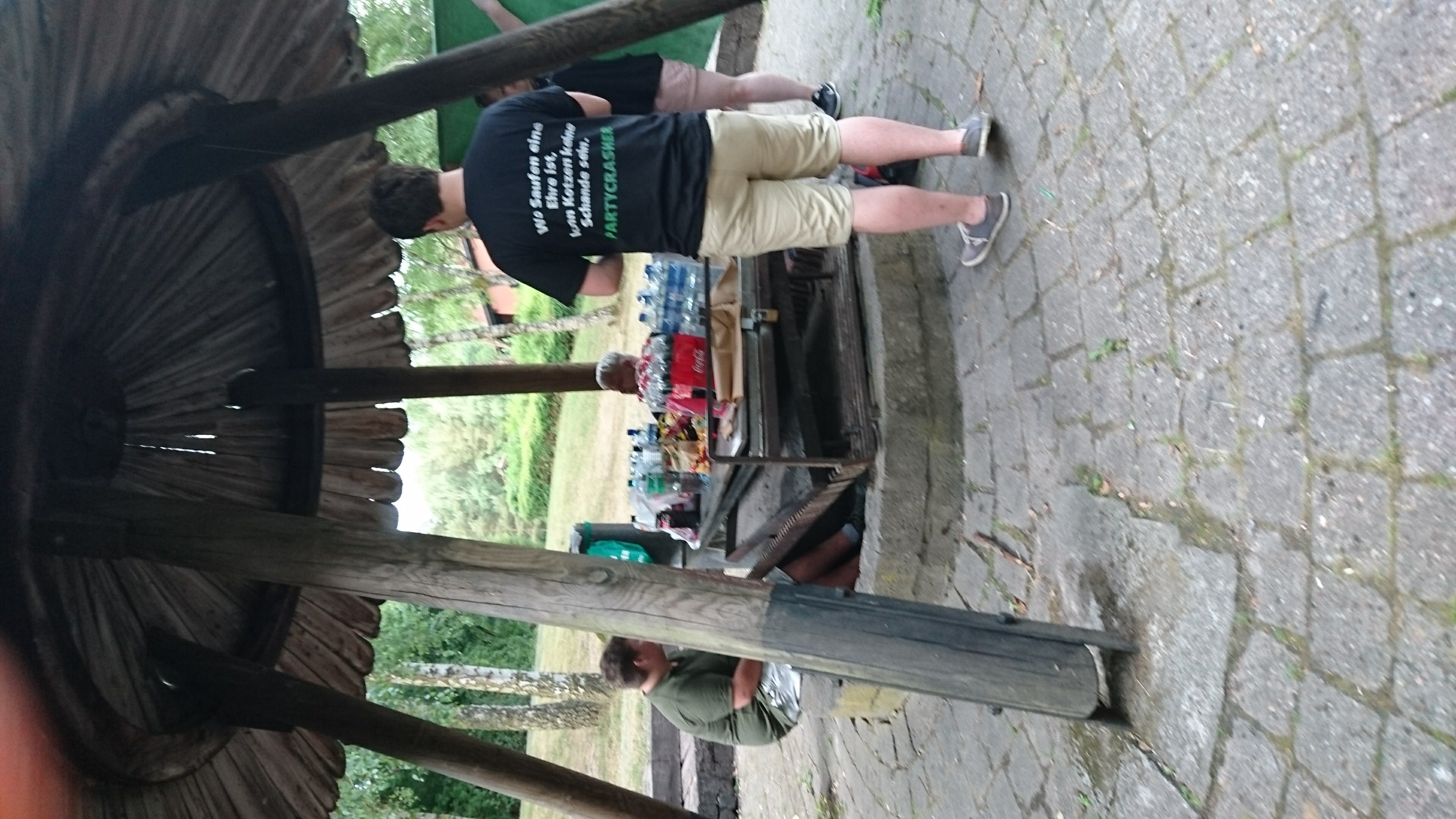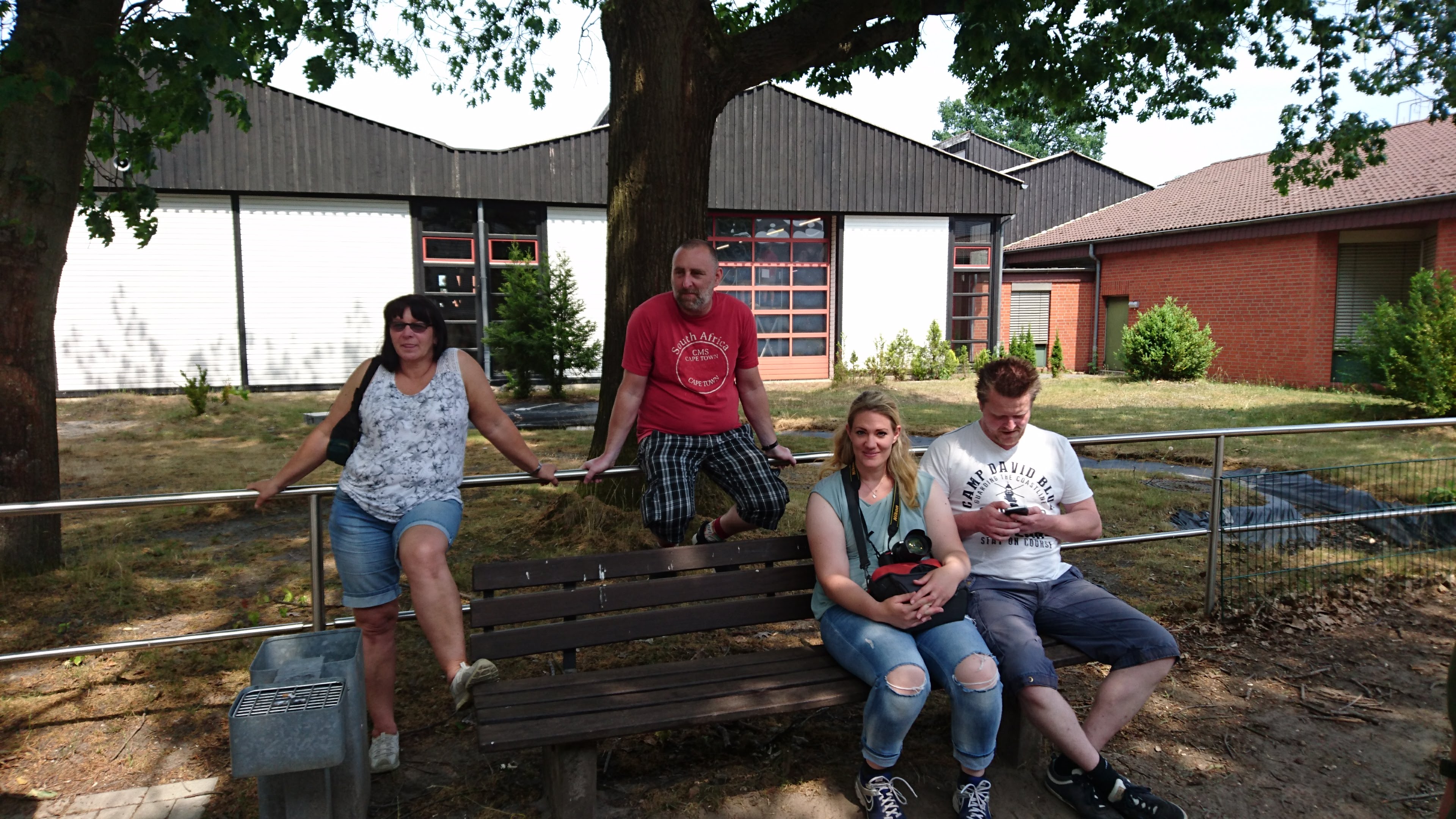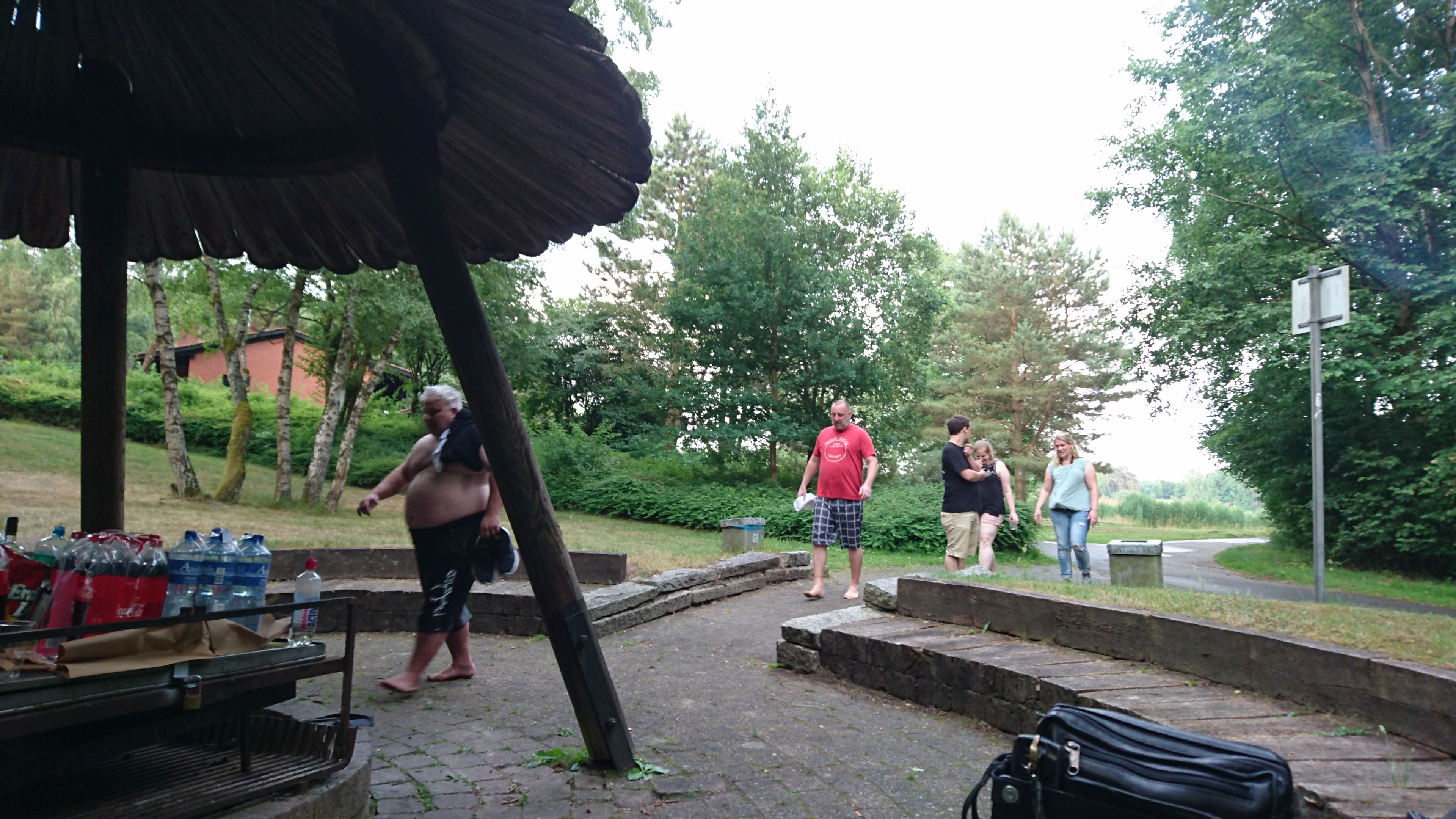 1100. Die Planungen für einen geregelten Tagesablauf sind im Gange. Gemeinschaftlich wird beschlossen, dass der Besuch des örtlichen Panzermuseums Mittelpunkt des Treffens werden soll. Kommandant Jan übernimmt die weitere Planung und berechnet mit Hilfe seines Handys und diverser Apps einen Weg zum Museum. Währenddessen berichtet der bereits am Donnerstag angereiste Andreas von einem See mit angrenzendem Grillplatz. Spieler Faco übt sich ob des Grillplatzes in Strandnähe in Euphorie und freut sich auf nackte Hühnerschenkel. Spielerfrau Laura dagegen entdeckt relativ schnell den dazugehörigen Zusammenhang und bedeutet ihrem Freund Fritz mit einem schmerzhaften Blick ohne Worte: „ Du gehst nicht in den See.“ Da an dieser Stelle das Ende der Fahnenstange noch nicht erreicht ist folgt richtigerweise der Hinweis von Fritz in die Runde, dass er ja keine Badehose dabei hätte. Faco und Smörre haben. Auf den Einwurf eines der Anwesenden dass man ja für Fritz noch eine kaufen könnte folgt jetzt der lautstarke Einwurf der Spielerfrau Laura an Fritz, der aber spürbar an alle Anwesenden gerichtet ist: „ Du gehst nicht in den See.“ Spielerfrau Ilka denkt sich ihren Teil und vergisst dabei, von der Situation ein Foto zu schießen.