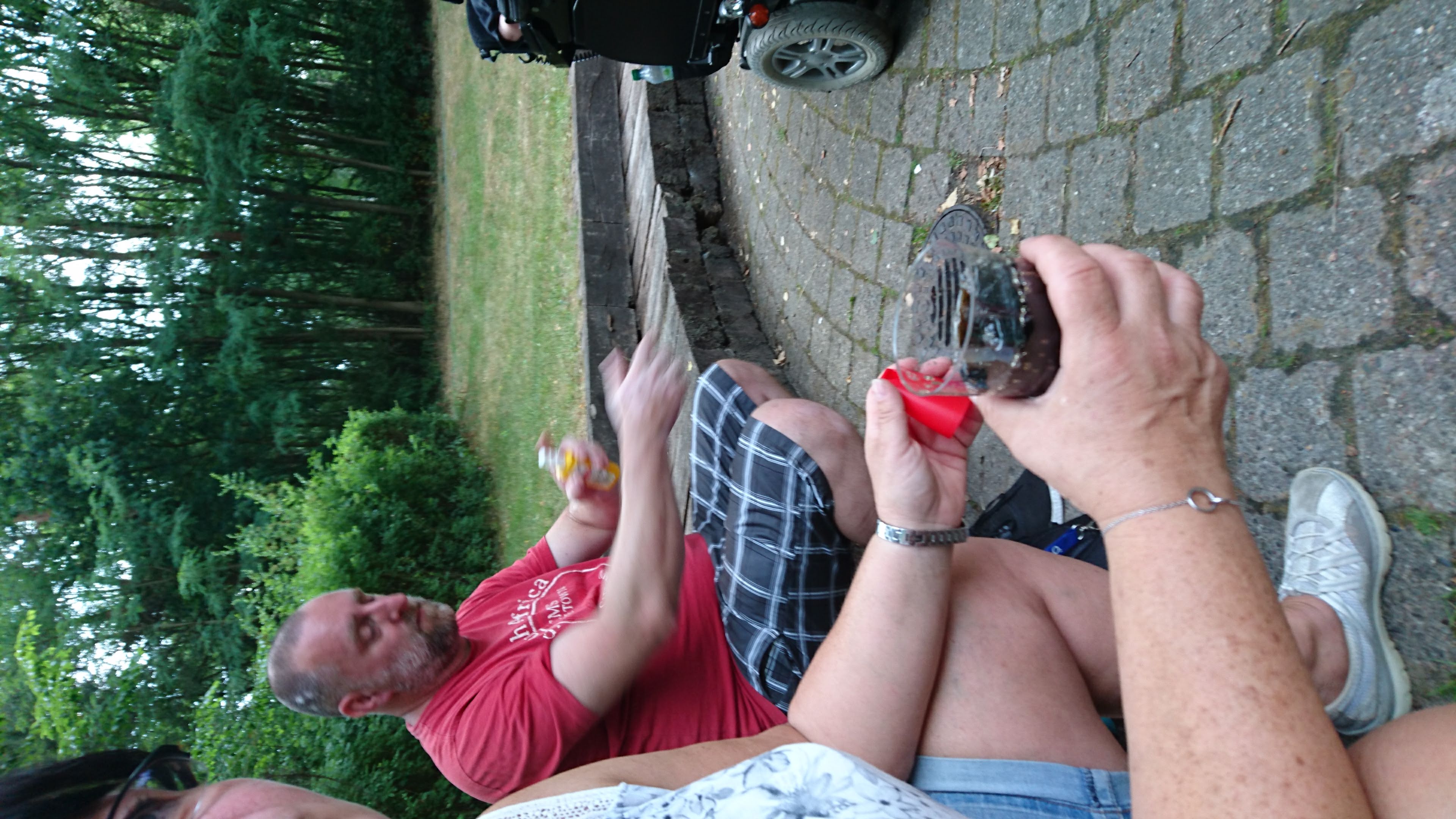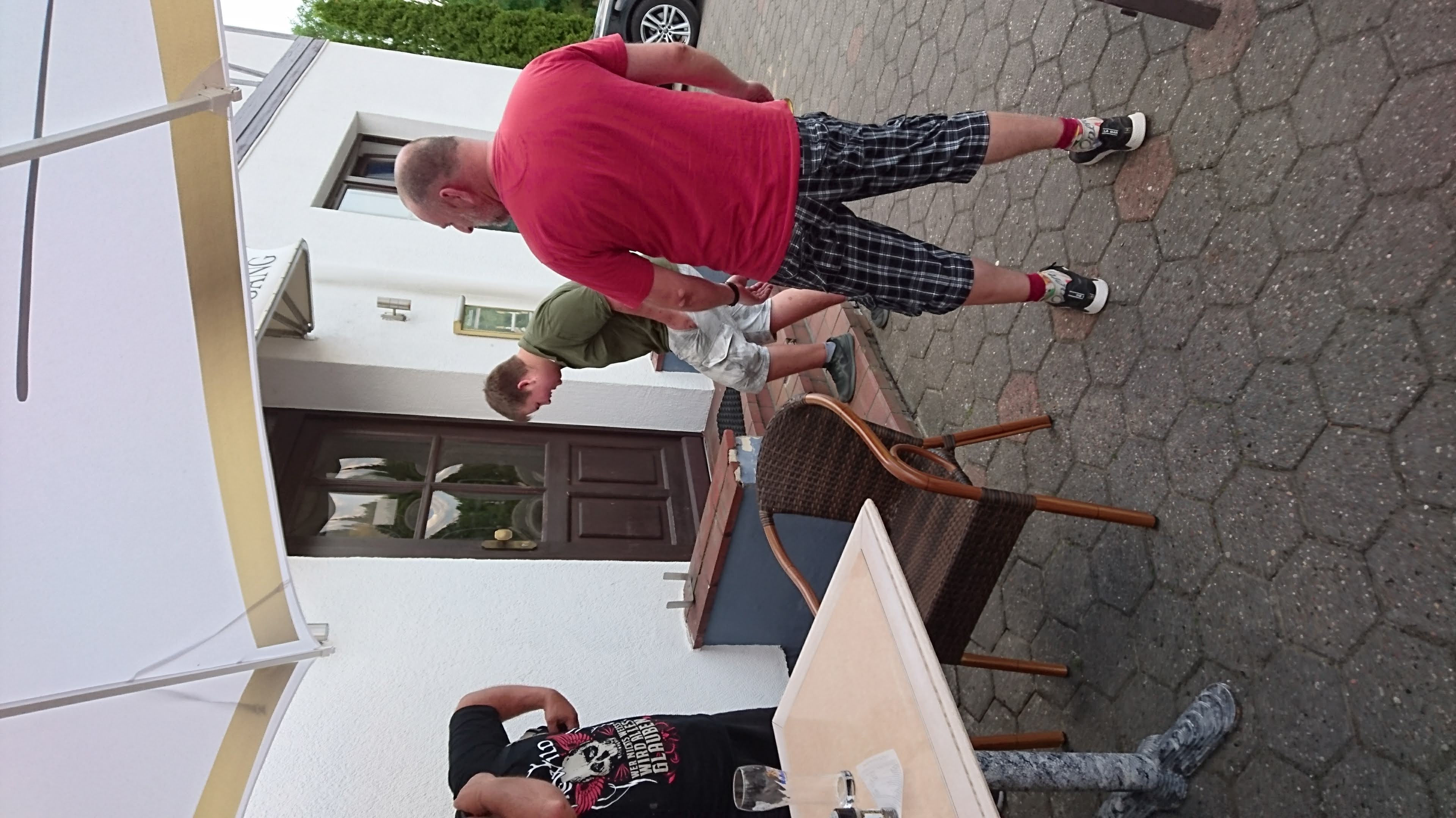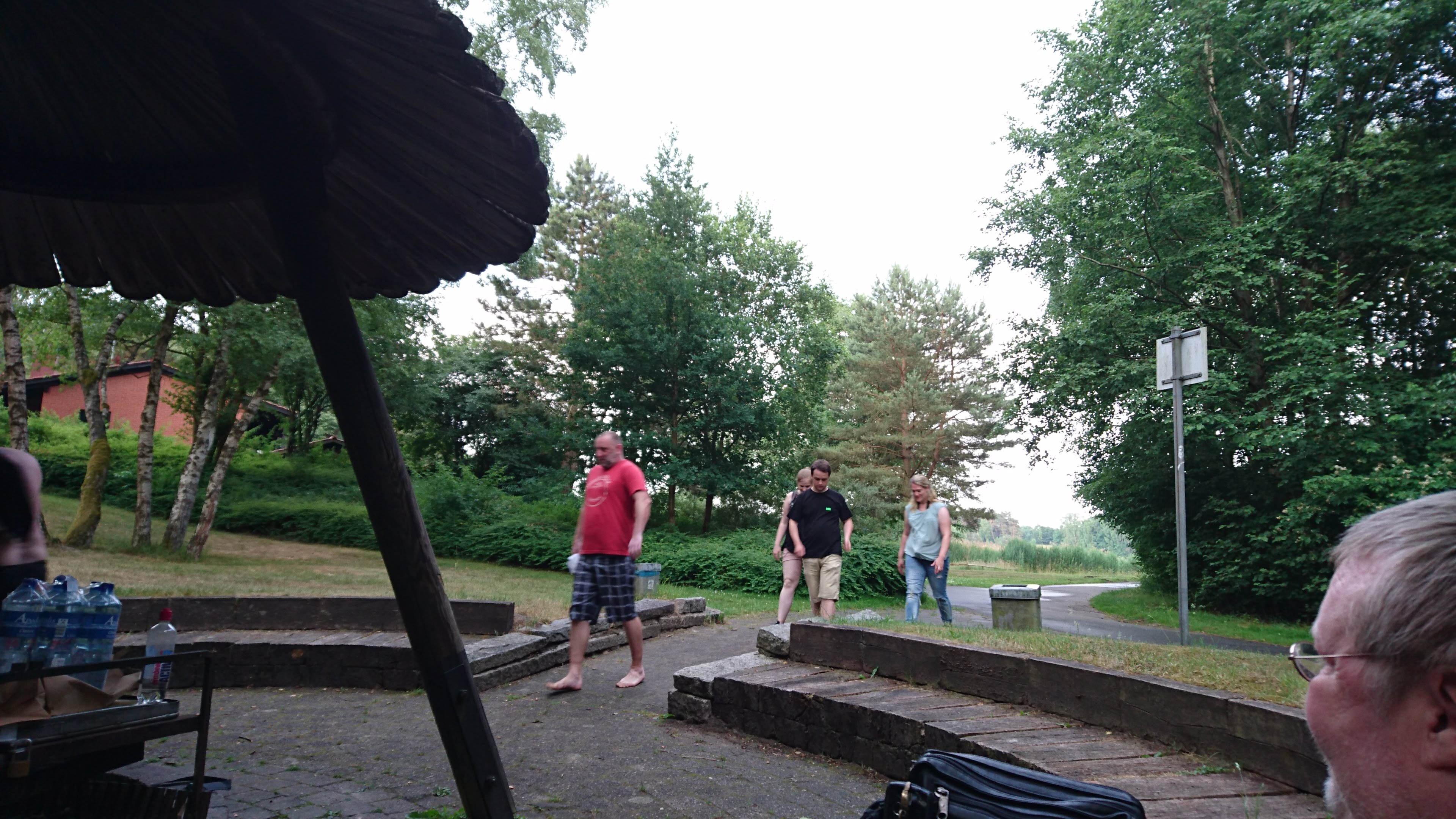 1100. Die Planungen für einen geregelten Tagesablauf sind im Gange. Gemeinschaftlich wird beschlossen, dass der Besuch des örtlichen Panzermuseums Mittelpunkt des Treffens werden soll. Kommandant Jan übernimmt die weitere Planung und berechnet mit Hilfe seines Handys und diverser Apps einen Weg zum Museum. Währenddessen berichtet der bereits am Donnerstag angereiste Andreas von einem See mit angrenzendem Grillplatz. Spieler Faco übt sich ob des Grillplatzes in Strandnähe in Euphorie und freut sich auf nackte Hühnerschenkel. Spielerfrau Laura dagegen entdeckt relativ schnell den dazugehörigen Zusammenhang und bedeutet ihrem Freund Fritz mit einem schmerzhaften Blick ohne Worte: „ Du gehst nicht in den See.“ Da an dieser Stelle das Ende der Fahnenstange noch nicht erreicht ist folgt richtigerweise der Hinweis von Fritz in die Runde, dass er ja keine Badehose dabei hätte. Faco und Smörre haben. Auf den Einwurf eines der Anwesenden dass man ja für Fritz noch eine kaufen könnte folgt jetzt der lautstarke Einwurf der Spielerfrau Laura an Fritz, der aber spürbar an alle Anwesenden gerichtet ist: „ Du gehst nicht in den See.“ Spielerfrau Ilka denkt sich ihren Teil und vergisst dabei, von der Situation ein Foto zu schießen.