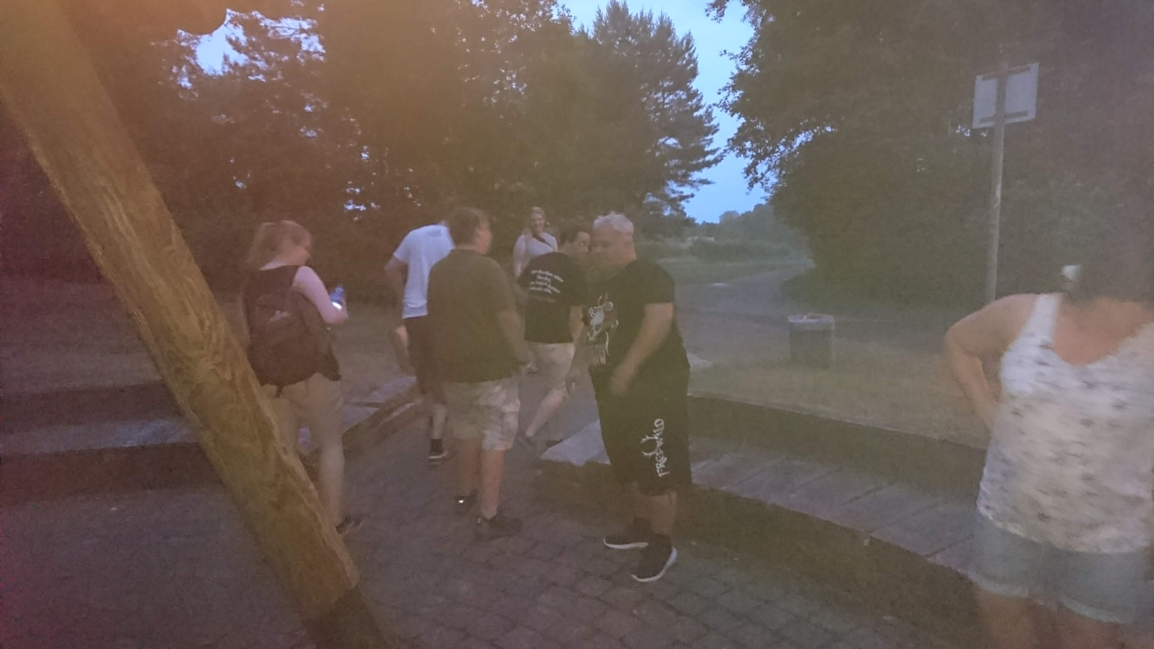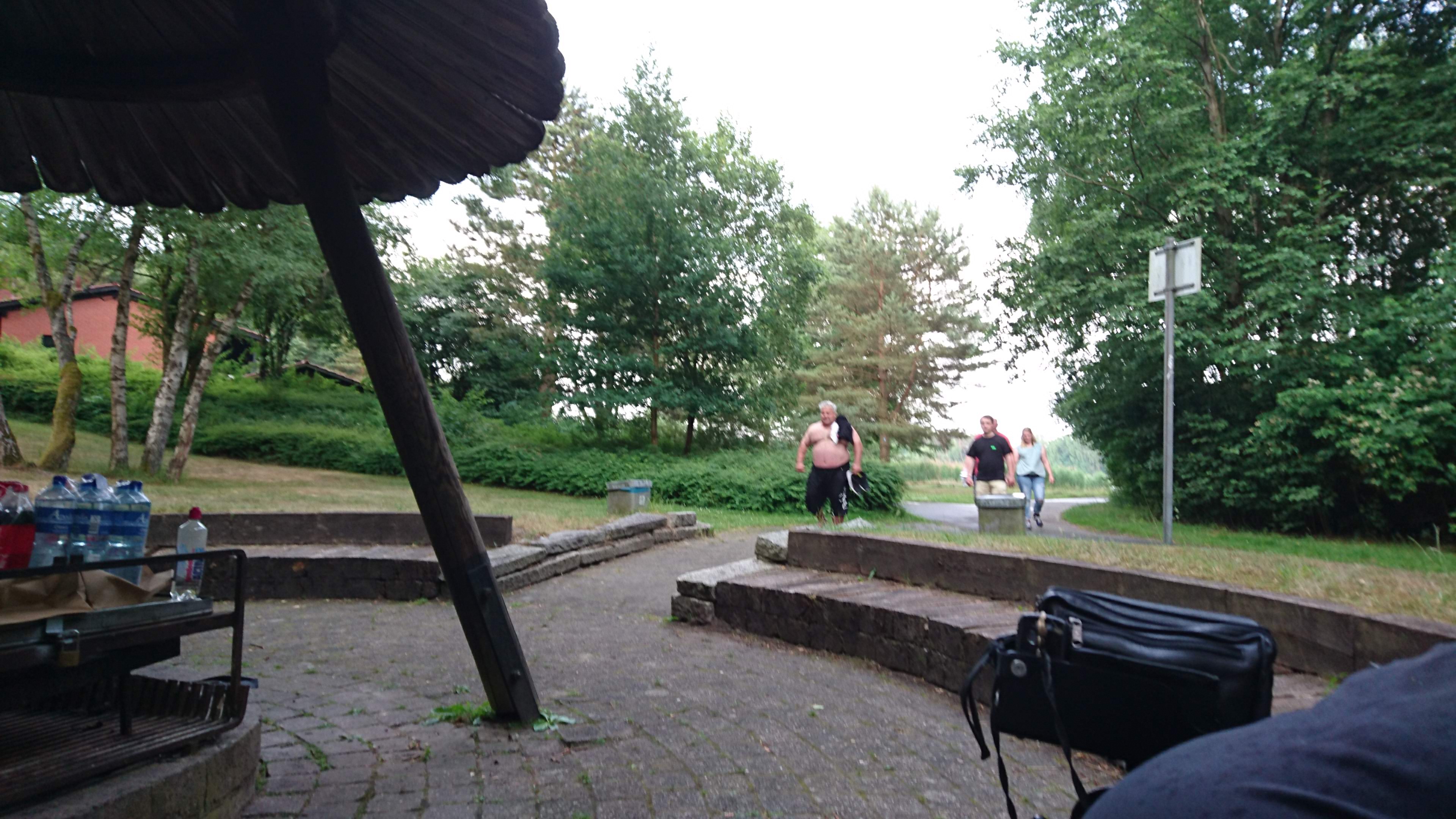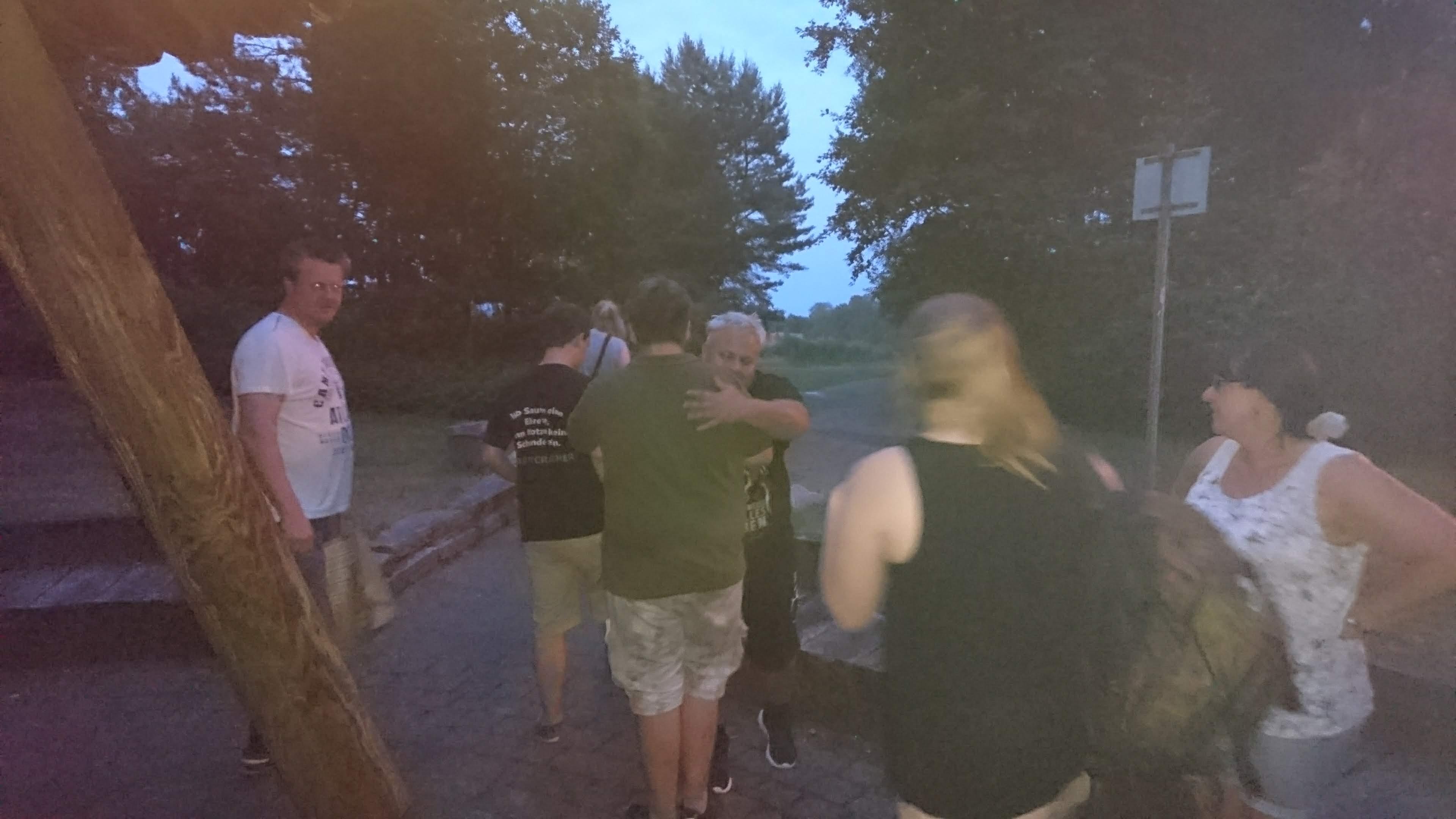 1830. Die Einkaufgruppe trifft mit Getränken, Knabbereien, Mückenspray und zwei unberührten Schönheiten am Grillplatz ein. Bei Jan und Jens lockert sich aufgrund der erfolgreich verteidigten Unberührtheit ihrer Begleitungen die Stimmung.